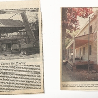 - Image 4 - Newspaper article titled "Brugh Tavern Re-Roofing" dated November 13, 1996, as well as a photograph of Brugh Tavern from the Roanoke Times, published October 31, 1997.