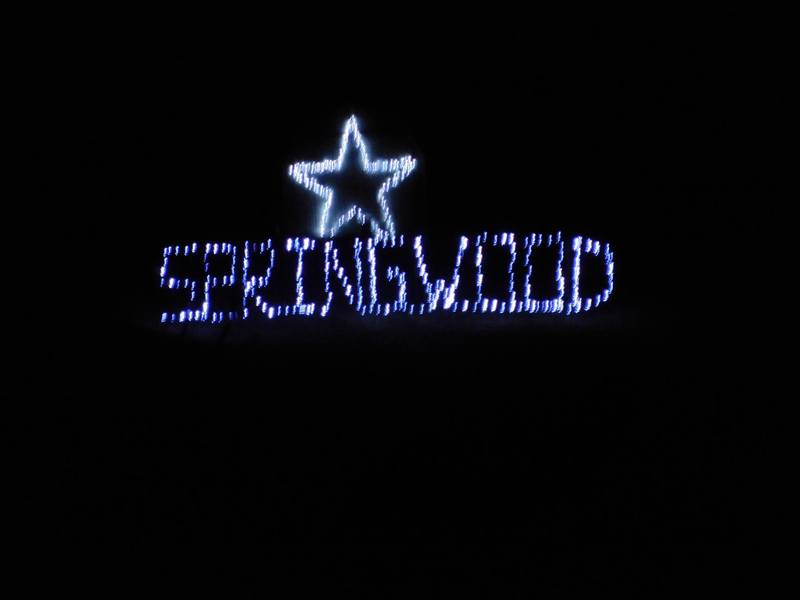 - Image 15 - A photograph of Christmas lights making a star and spelling out "SPRINGWOOD",