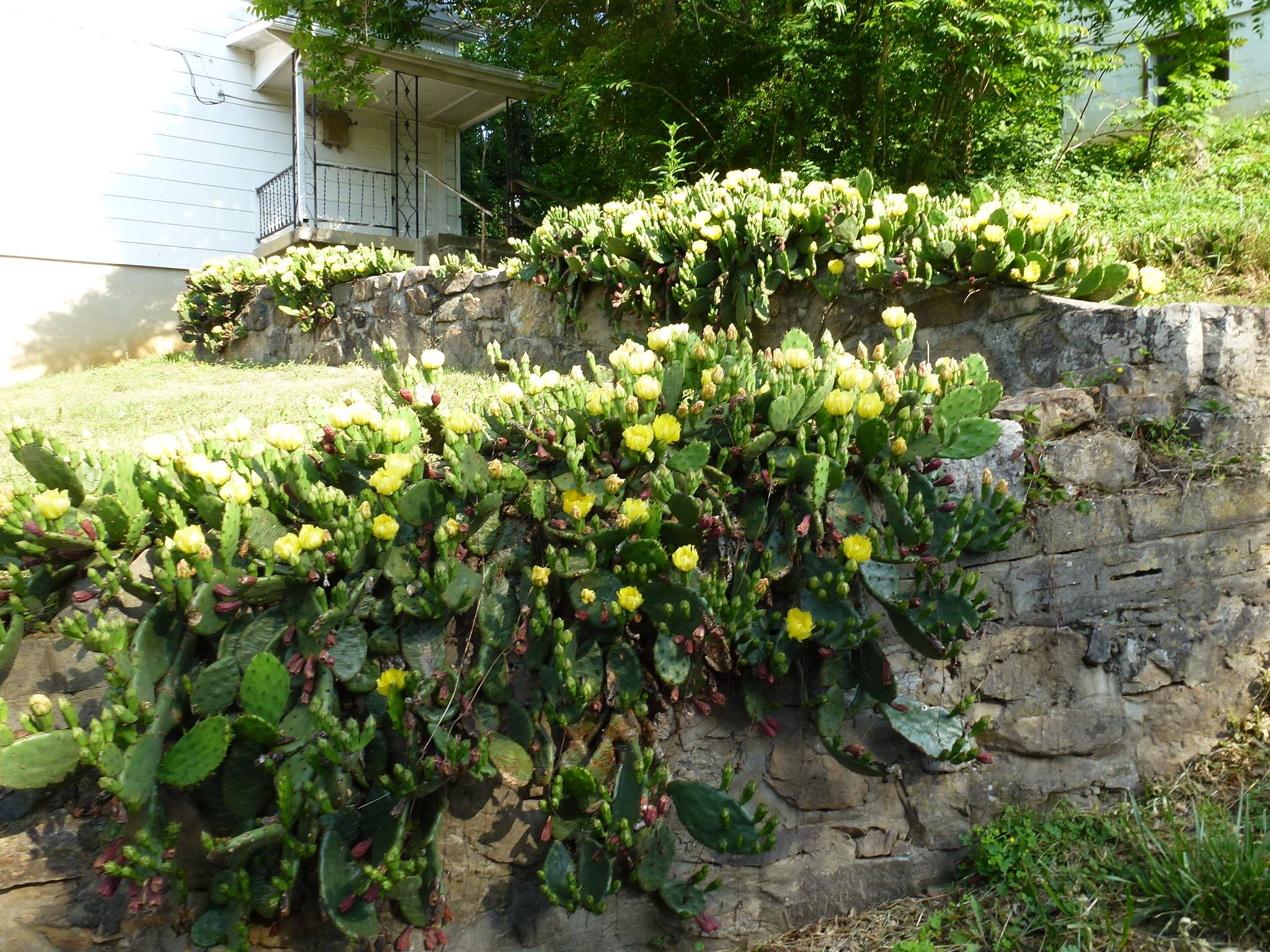- Image 16 - A color photograph of a retaining wall covered in cactus at the corner of Springwood and Trebark Road.