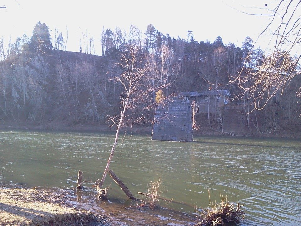 James River Bridge, stands in ruins from the 1985 Flood