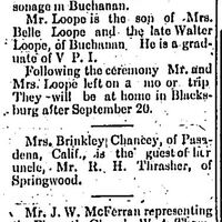 Following the ceremony Mr. and Mrs. Loope left on a mo[t]or trip. They will be at home in Blacksburg after September 20.
