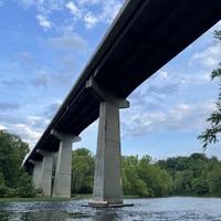 - Image 6 - color photograph showing another angle of the ruins of the James River Bridge after the flood, taken by Mike Thrasher.