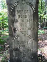 Burks, Charles, Edmunson, 1836 - 1864 Charles Edmunson Burks was born March 10, 1836 to Arthur Landon Burks and Damaris Wilson Burks. He served in the Confederate Army, and died in action on February 22, 1864. He is buried at Burks Family Cemetery.