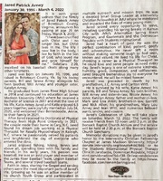Arney, Jared Patrick, 1996 - 2022 Jared Arney was born in 1996 in Botetourt County to Bill and Teresa Arney. He married Katie Arney in 2020. Jared Arney died on March 4, 2022. He is buried at Saint Francis Springs Prayer Center Columbarium.