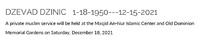 Dzinic, Dzevad, 1950 - 2021 Dzevad Dzinic was born on 1950. He died on December 15, 2021, and is buried in Old Dominion Memorial Gardens.