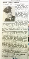 Skelton, Walter, 1947 - 2020 Walter "Butch" Skelton was born on January 7, 1947 to Jack Morgan Skelton and Margaret Greer Skelton. He married Bonnie Laymon Skelton. They had one child, Timothy W. Skelton. Walter Skelton died on December 17, 2020, and is buried in Old Dominion Memorial Garden. He lived in Salem.