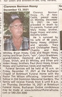 Hosey, Clarence Norman, 1950 - 2021 Clarence Hosey was born on November 28, 1950 to Truman and Mary Hosey. He married Nancy Hosey. They had four children: Tracy Peery, Chastity Whitley, Bryan Hosey, and Cody Hosey. Clarence Hosey died on December 13, 2021, and is buried in Old Dominion Memorial Gardens. He lived in New Castle.