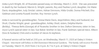 Wright, Anita Lynch, n.d. - 2020 Anita Lynch Wright was born to Roy and Pauline Lynch. She married Marvin G. Wright. She had one daughter, Iris Marie Davis, and one stepdaughter, Judy Sinclair. Anita Wright died on March 2, 2020, and is buried in Old Dominion Memorial Gardens. She lived in Roanoke.