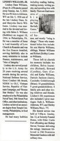 Williams, Lindsey Dane, Jr., 1930 - 2020 Lindsey Dane Williams "Pops" Jr. was born on October 5, 1930 in Alderson, West Virginia to Lindsey Dane, Sr. and Maryetta Davis Williams. He married Helen S. Williams "Bubbles" on August 18, 1984. His children included: Marvin Williams, Belva Journiette, Howard, Gary, and Kathy Williams, Darryle Jackson, and Casonda Goldsborough. Lindsey Williams Jr. died on January 5, 2020, and is buried in Old Dominion Memorial Gardens. He lived in Roanoke.
