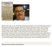 Tyree, Michael Todd, Sr 1967 - 2020 Michael Todd Tyree Sr. was born on June 29, 1967 to Matthew Tyree and Linda Carter Tyree. He married Julie Moran Tyree. They had two children, Michael Tyree and Amber Embry. Michael Tyree Sr. died on July 4, 2020, and is buried in Old Dominion Memorial Gardens. He lived in Troutville.