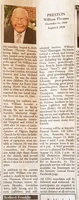 Preston, William Thomas, 1919 - 2020 William Thomas Preston was born in Franklin County on December 16, 1919 to London Armstead Preston and Lena Holland Preston. He married Sarah Martha Tyree on June 29, 1946. They had one child, Doris Jones. William Preston died on August 8, 2020, and is buried in Old Dominion Memorial Gardens.