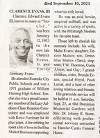 Evans, Clarence Edward, III, 1953-2021 Clarence Edward Evans III, known as "Touché", was born in 1953 to Clarence Evans, Jr. and Corine Germany Evans. He married Malai Evans. They had two children, Desiree Mattox and Demetrius Mattox. He has three stepchildren: T.W. Thornton, Curtis Alston, and Guy. Clarence Evans III died on September 10, 2021, and is buried in Old Dominion Memorial Gardens.