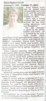 Kreft, Dana Robert, 1967 - 2021 Dana Kreft was born in 1967 to Robert John Kreft and Judy Baptiste. He married Paula Harper Kreft. They had three children: Robert, Justin, and Nick Harper (stepson). Dana Kreft died on October 27, 2021, and is buried in Old Dominion Memorial Gardens.