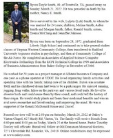 Smith, Byron Doyle, 1972 - 2022 Byron Smith was born in 1972 to Nancy e. Smith and Ronald Smith. He married Luljeta Smith. They had three children: Melina Smith, Aiden Smith, and Morgan Smith. Byron Doyle Smith died on March 21, 2022, and is buried in Old Dominion Memorial Gardens. He lived in Troutville.