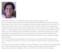 Law, Hebe Marie, 1961 - 2020 Hebe Marie Puckett Law, of Roanoke, was born in 1961. She has three children: Melinda, Terri, and Davie. Hebe Law died on February 7, 2020, and is buried in Old Dominion Memorial Gardens.