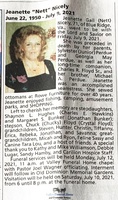 Nicely, Jeanette, 1950 - 2021 Jeanette "Nett" Nicely was born on June 22, 1950 to Sylvester (Junior) Perdue and Georgia May Perdue. Her longtime companion was Charles R. Floyd Sr. She had three step-children: Shaynon L. Hughes, Margaret S. Bunker, and Chuck Floyd. Jeanette Nicely died on July 9, 2021, and is buried in Old Dominion Memorial Gardens. She lived in Blue Ridge.