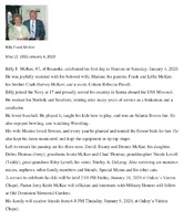 McKee, Billy Frank, 1932 - 2020 Billy Frank McKee, of Roanoke, was born on May 15, 1932 to Frank and Lillie McKee. He married Maxine. They had four children: David, Danny, Dennis, and Debra. Billy McKee died on January 4, 2020, and is buried in Old Dominion Memorial Gardens. He lived in Roanoke.