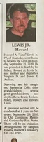 Lewis, Howard A, Jr., 1943 - 2020 Howard A. "Link" Lewis Jr. was born to Howard A. Lewis, Sr. and Virginia D. Axelson. His stepfather was James E. Axelson. He has one child, Samantha Cole. Howard Lewis Jr. died on September 21, 2020, and is buried in Old Dominion Memorial Gardens. He lived in Roanoke.