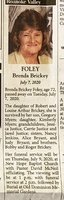 Foley, Brenda D, 1947 - 2020 Brenda Diane Brickey Foley was born on October 29, 1947 to Robert and Louise Arthur Brickey. She had two children, Gregory and Kimberly Myers. Brenda Foley died on July 7, 2020, and is buried in Old Dominion Memorial Gardens.