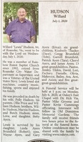 Hudson, Willard, 1936 - 2020 Willard "Lewis" Hudson was born in 1936 to Ollie Price and William Hudson. He married Polly Hudson. They had four children: Betty Ayers, Linda Ayers Brumsfield, Wayne Ayers, and Gary Ayers. Willard Hudson died on July 1, 2020, and is buried in Old Dominion Memorial Gardens. He lived in Roanoke.