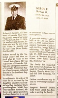 Kemble, Robert G, 1936-2020 Robert G. Kemble was born on October 10, 1936 in Lafayette, Indiana to Walter Kemble and Dora Kemble. He was married. They had one daughter, Jennifer MacDonald. Robert G. Kemble died on July 22, 2020, and is buried in Old Dominion Memorial Gardens.