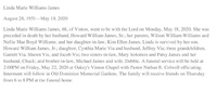 James, Linda M, 1951 - 2020 Linda Marie Williams James, of Vinton, was born on August 28, 1951 to Wilson William Williams and Nellie Mae Boyd Williams. She married Howard William James, Sr. They had two children, Howard William James, Jr. and Cynthia Marie Via.
