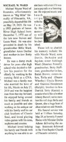 Ward, Michael Wayne, 1975 - 2021 Michael Wayne Ward, known as "Big Mike", was born on December 7, 1975 to Steven and Laura Ward. He married Nicole on July 27, 2019. He had three children: Devin, DeAndre, and Jayden. Michael Ward died on May 19, 2021, and is buried in First Baptist Church of Fincastle. He lived in Roanoke, but previously in Fincastle.