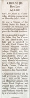 Crouse, Roy Lee, Jr., 1956 - 2020 Roy Lee Crouse Jr. was born to Roy Crouse Sr. and Margaret Venable Crouse. He had two children, Michele Adams and Roy Crouse III. Roy Crouse Jr. died on July 2, 2020, and is buried in Old Dominion Memorial Gardens. He lived in Roanoke.