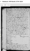 Will of Peter Evans These document pages contain a list of family member information for Peter Evans of Botetourt County taken from Augusta County records, and followed by his hand written will. The will was written on December 2, 1796, and he passed away in 1797.