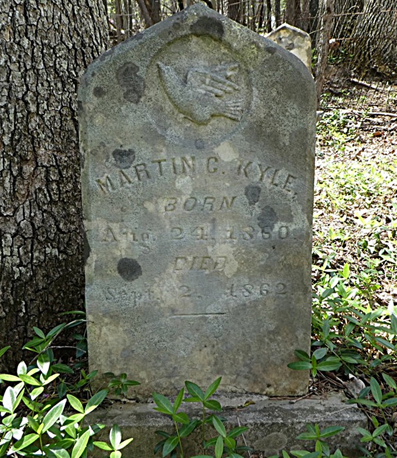 - Martin Christopher Kyle was born August 24, 1860 to Joseph Kyle and Mary Jane Peck Kyle. He died September 2, 1862, aged 2, and was buried at Kyle Burying Ground.