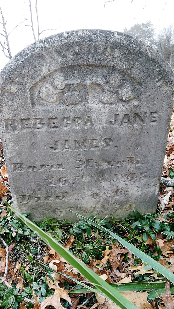 - Rebecca Jane James was born in 1845. She died in 1854 at the age of 9 years, 6 months, and 29 days, and is buried in Brick Union Cemetery.