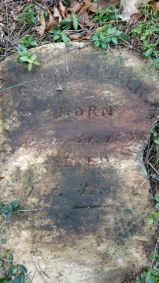 - Susan Snider was born October 31, 1792 to John Huff and Mary "Polly" Gearhart Huff. She married Jacob Snider. She died on October 31, 1863 and is buried at Brick Union Cemetery.