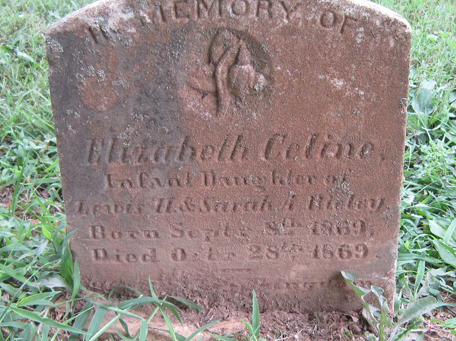 - Elizabeth Celine Rieley was born September 8, 1869 to Lewis Harvey Rieley and Sarah Alexander "Sallie" Hawkins Rieley. She died October 28, 1869 at 7 weeks old, and is buried at Blue Ridge Church of the Brethren cemetery.
