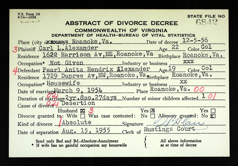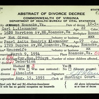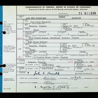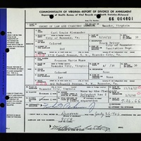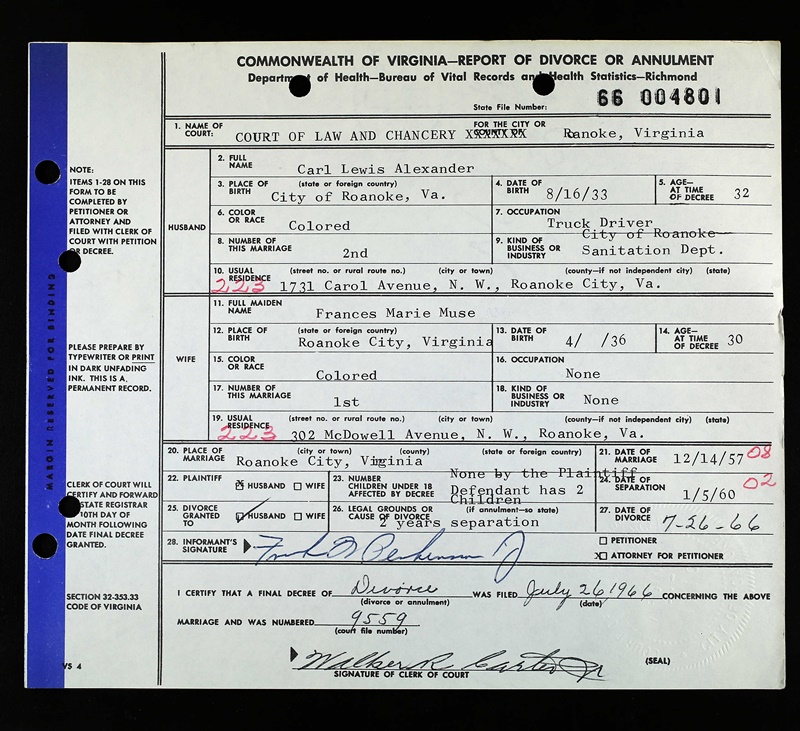 - Image 6 - Report of Divorce or Annulment between Carl Lewis Alexander and Frances Marie Muse dated July 26, 1966.