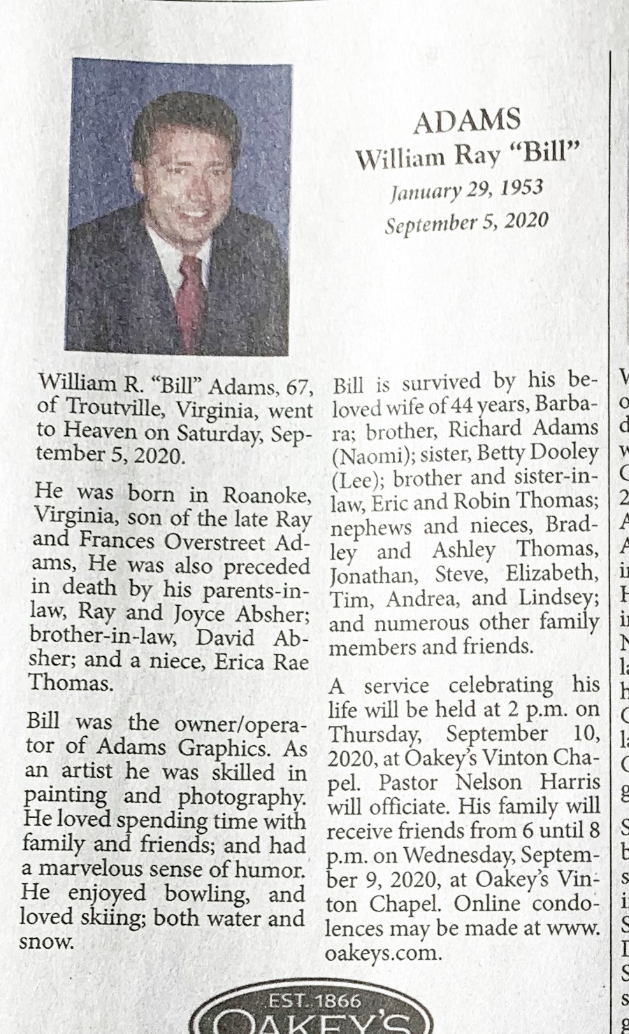 Adams, William Ray 1953-2020
