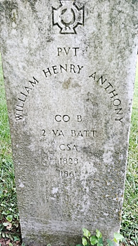 William Henry Anthony was born in 1828 toSamuel Anthony and Mary Fleming Irvine. He married Mary Virginia Wilson Anthony. His children include Jordan Anthony, Sallie Anthony Randolph, Mary Anthony Mason, Deborah Anthony McCarthy, and Julia Gilmer Anthony Dunlop.