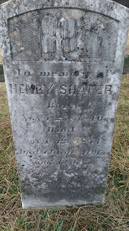 - Henry Shafer was born in 1840. He died in 1854 at the age of 13 years, 11 months, and 12 days, and is buried in Shafer-Gilliam Cemetery.