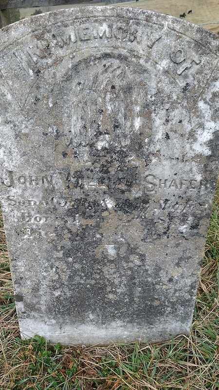 - John William Shafer was born December 2, 1843 to John Shafer and Susannah "Susan" Wingart Shafer. He died July 17, 1865, and is buried in Shafer Cemetery.