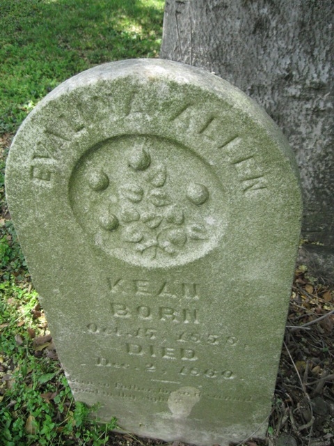 - Evalina Allen Kean was born October 15, 1858 to Dr. Otho Williams Kean and Jane Smith Arthur Kean. She died December 2, 1860, aged 2, and is buried in Buchanan Episcopal Cemetery.