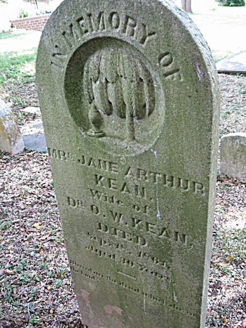 - Jane Smith Arthur Kean was born in 1830 or 1831. She married Dr. Otho Williams Kean. Her children include Andrew Arthur Kean, Evalina Allen Kean, and Mary Evelyn Kean James. She died September 18, 1861, and is buried in the Buchanan Episcopal Cemetery.