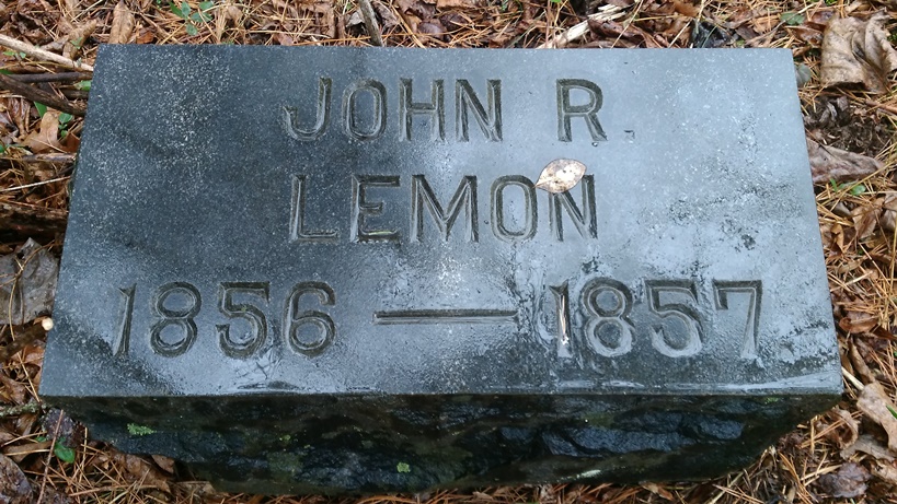 - John R. Lemon was born in 1856. He died in 1857, and is buried in Lemon Burial Ground.