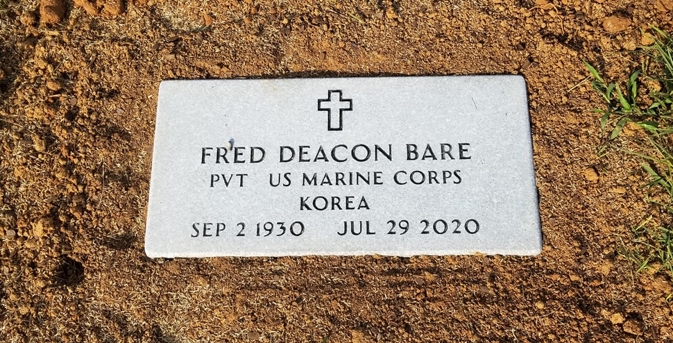 - Image 1 - Headstone for Fred Deacon Bare, indicating he served in the US Marine Corps in Korea.