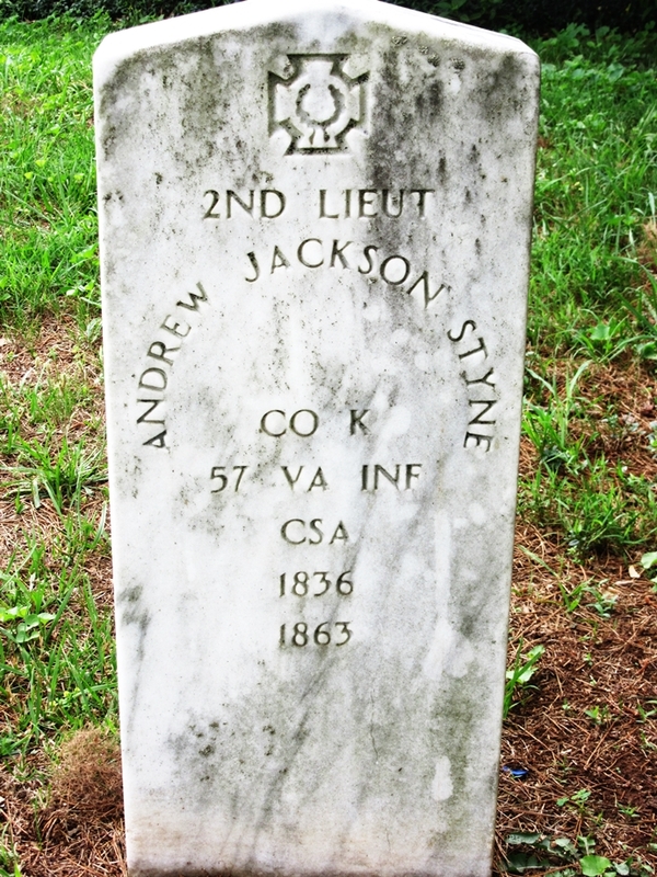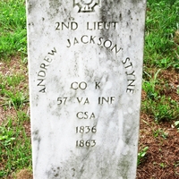 Andrew Jackson Styne was born in 1841 to William & Sarah Dollman Styne. He died during the Battle of Gettysburg during the Civil War. He is buried at Noftsinger-Styne-Pico Cemetery.