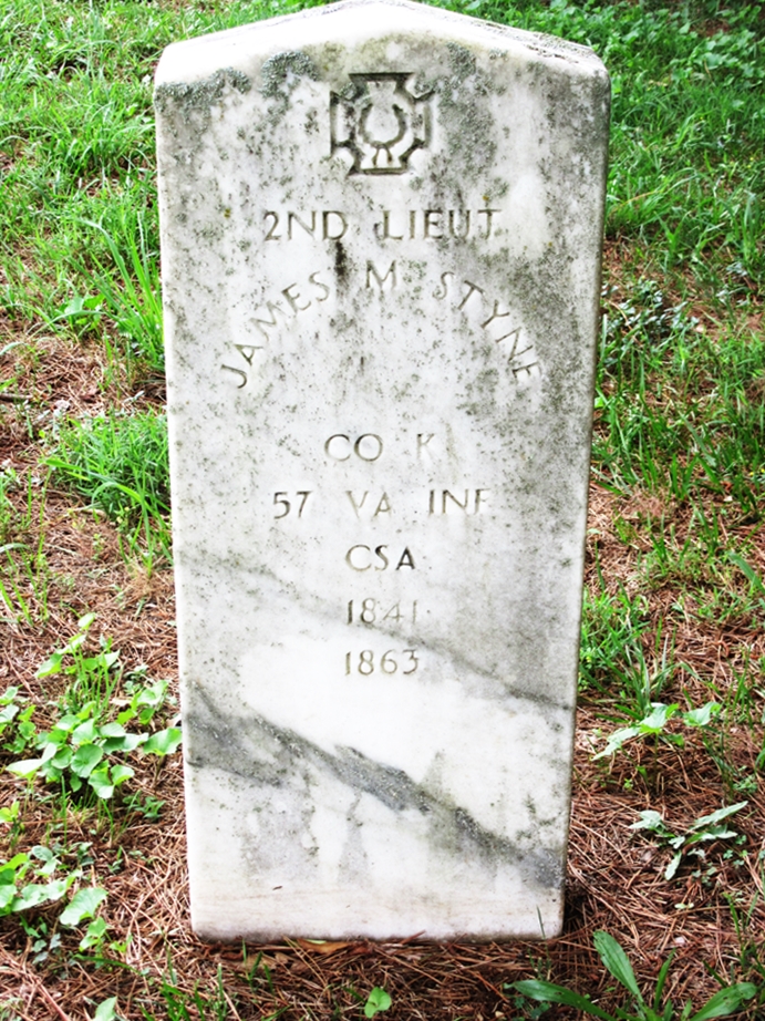 James Styne was born in 1841 to William and Sarah Ann Dollman Styne. He died during the Battle of Gettysburg in the Civil War. He is buried in Noftsinger-Styne-Pico Cemetery.