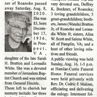 - Buckner, Gladys Veola Hilton, 1936 - 2020