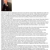 - Elbert Dovel was born on July 10, 1929 in Rockingham County to Rev. Homer Dovel and Hettie Lam Dovel. He married Emma Jean Frances Hensley Dovel. They had five children: Kemberly Smith, Lorna "Bonnie" Saunders, Amy Dovel, Nathen Dovel, and Laila Meftah. Elbert Dovel died on September 25, 2020, and is buried in Old Dominion Memorial Gardens. He lived in Roanoke.