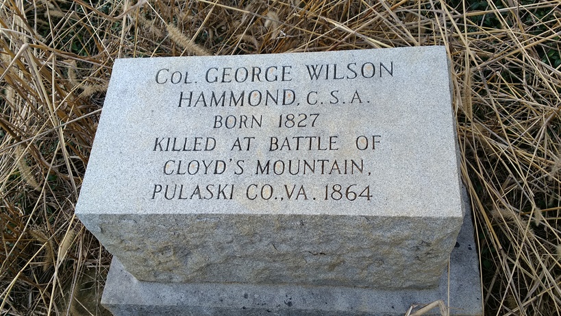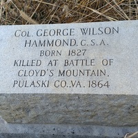 - Col. George Wilson Hammond was born July 24, 1828 to Petter Hammond and Margaret Houseman Hammond. He married Emaline Mason Scott Hammond. He served in the Confederate Army and was killed in action at Battle of Cloyd's Mountain, Pulaski Co., VA. He is buried at Hammond-Henderson-Houseman Cemetery.