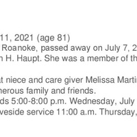 - Pong Nam Haupt "May" was born on December 5, 1939. She married John H. Haupt. Pong Haupt died on July 11, 2021. She lived in Roanoke and was buried at Old Dominion Memorial Garden.