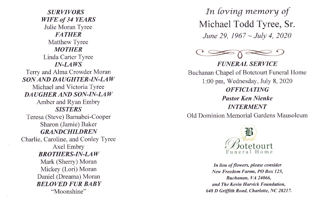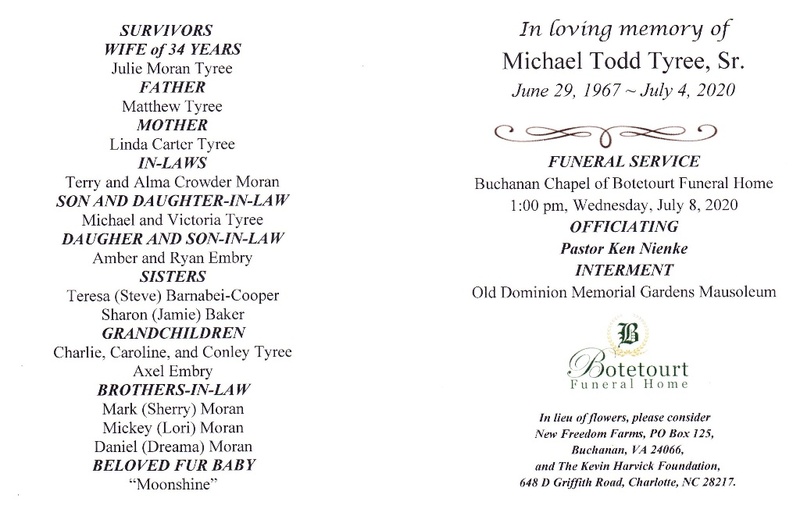 - Tyree, Michael Todd, Sr 1967 - 2020
