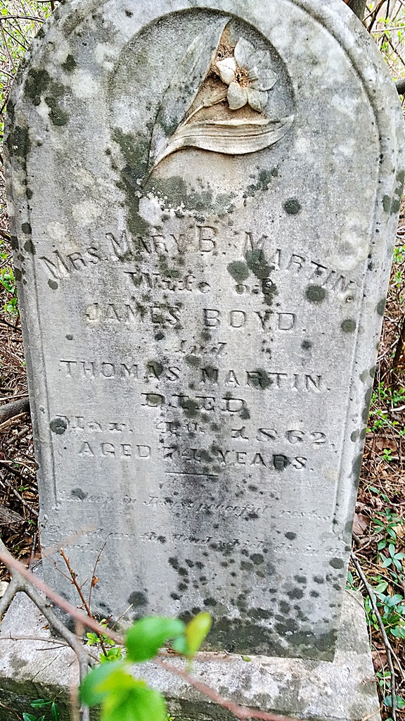 - Mary E. Martin was born 1788. She married James Boyd and Thomas Martin. She died March 4, 1862, and is buried in Boyd Cemetery.